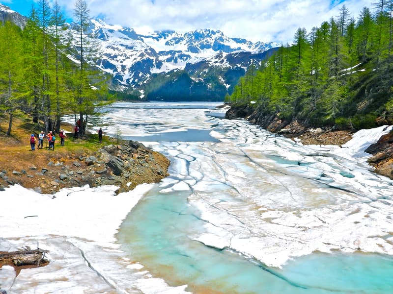 L’Alpe Devero è talmente unico e seducente che riesce in ogni stagione ad incantare i suoi appassionati visitatori. La maggior parte di escursionisti visita queste dolci praterie fiorite durante le stagioni estive ma è durante il brevissimo periodo del disgelo che il Lago di Codelago sa regalare colori e immagini spettacolari grazie ai blocchi di ghiaccio galleggianti, tutto intorno laghetti e torbiere abitati da moltissime rane risplendono di colori intensi mentre l’ultima neve lascia lo spazio alle prime fioriture.
